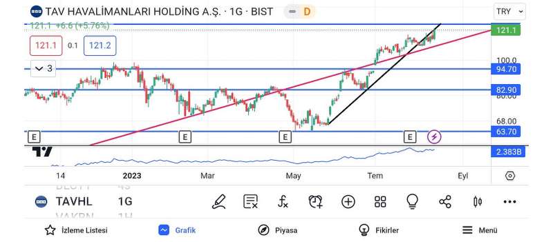 TAVHL Hisse Senedi grafiği incelendiğinde olası düzeltmeye kadar bir ralli söz konusu..